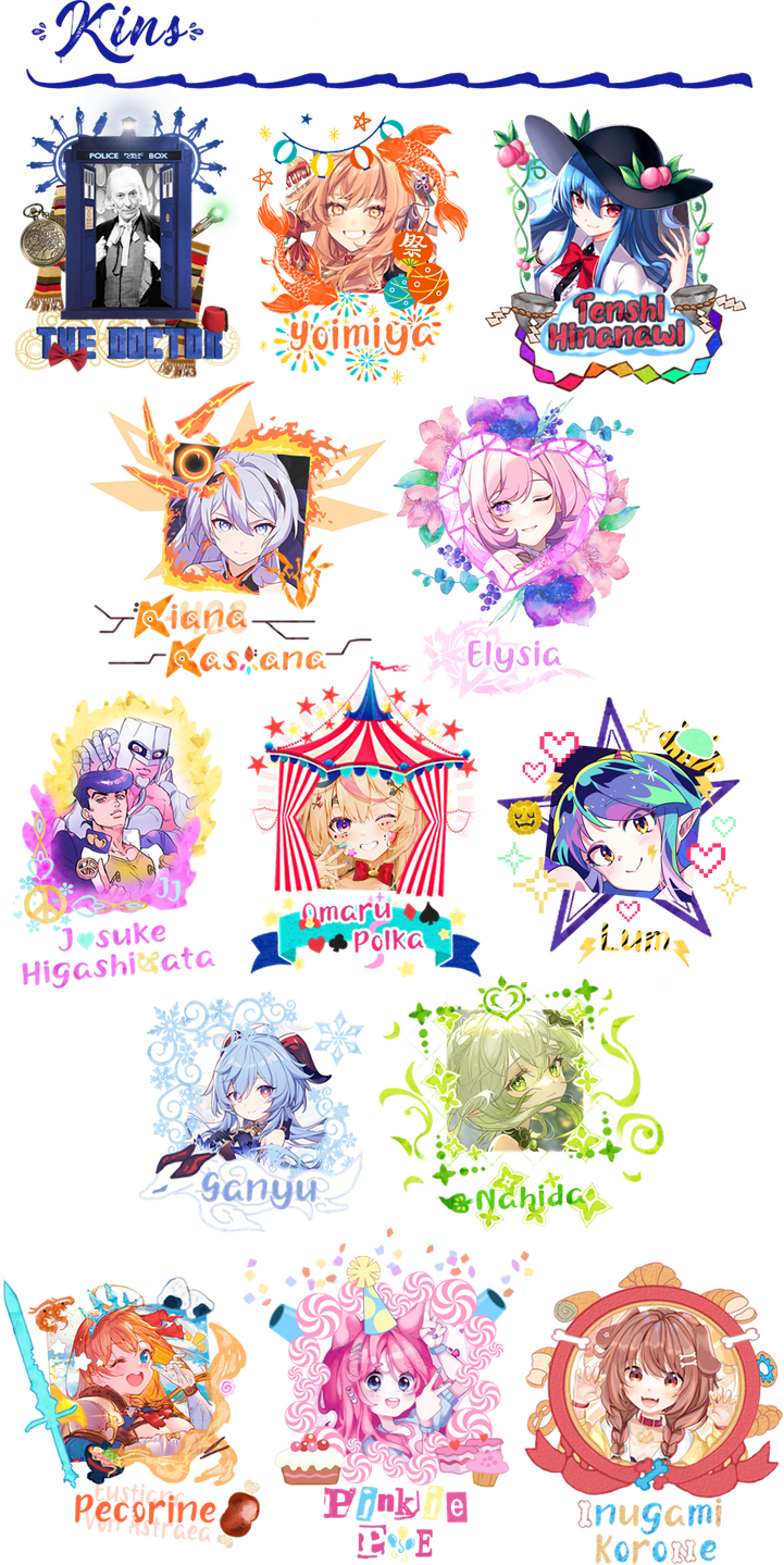 | Wouldn't you know it, just as it reads, it's a list of my Kins they really do represent a lot myself in different aspects, some more than others but still i have quite a attachment to them, i hope i make a good first impression! |